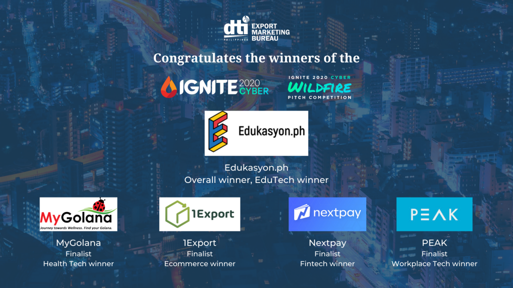Filipino startup Edukasyon.ph emerged as the overall winner in the Wildfire Pitch Competition, held during the Ignite 2020 Cyber Conference on 13-15 and 20-22 October 2020.