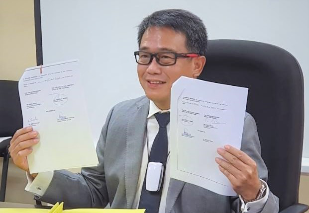 IPOPHL Director-General Rowel Barba and UK Ambassador to the Philippines Daniel Pruce countersign the MOU on Technical Assistance under the Financial Sector and Intellectual Property Component of the Prosperity Fund.