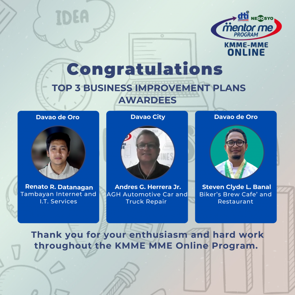 DAVAO CITY – A total of 48 micro-enterprises from the Davao Region celebrated their successful completion of the Kapatid Mentor ME (KMME) Money Market Encounter (MME) Online Program Batch 1.