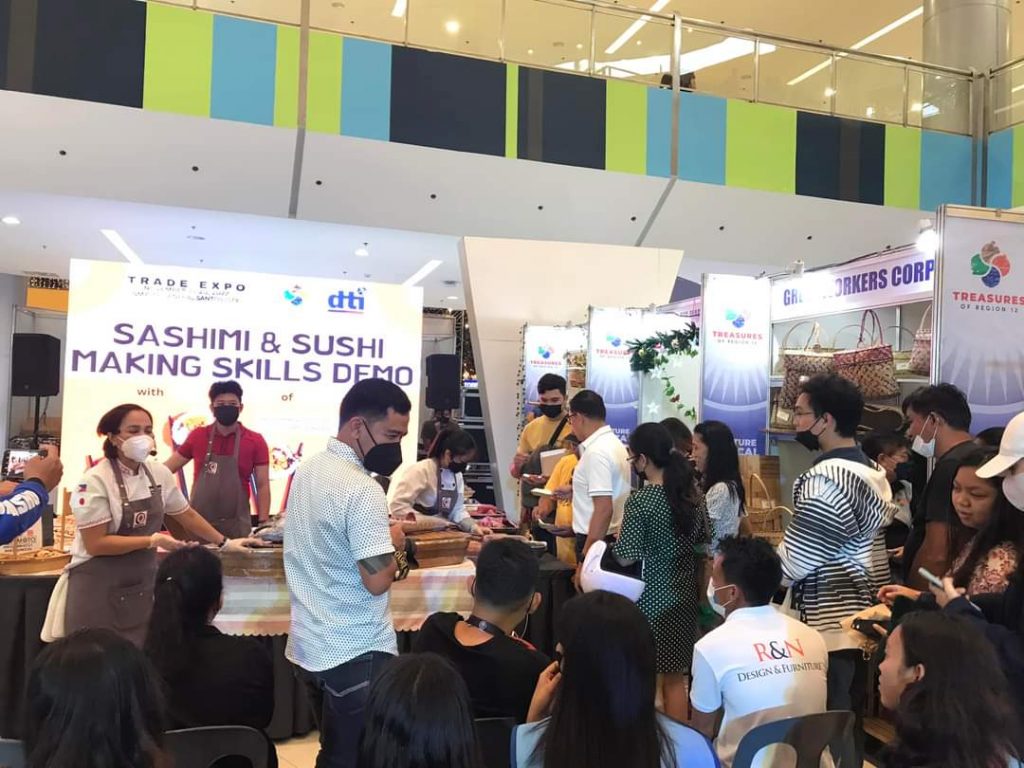 Aside from the product selling activity, DTI 12 conducted several pocket activities and fora aimed at developing MSMEs competencies, to provide sharing of best practices, and skills and entertainment sessions such as cooking (tuna sashimi & sushimi, and coconut) demo, consumer advocacy forum, technotainment with TESDA 12, Treasures of Region 12 Fashion Show, coffee brewing and latte art demo, youth forum, suppliers’ forum, RAPID innovation forum, SSF ConVERGE, LSP-PPG livelihood seeding summit, MSME forum, Jobs Fair with DOLE 12, 9th Cty and Municipality Competitiveness Index (CMCI) Awarding Ceremony, Kapatid Mentor Micro Enterprise (KMME) forum, Project SIKAP Entrep booth of BJMP-CHR-DTI for the products of persons reprieved of liberty (PDLs), and many more.