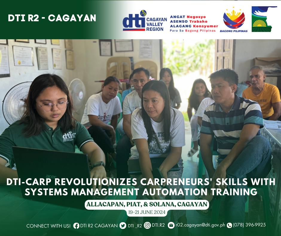 Piat, Solana, and Allacapan, Cagayan — The Department of Trade and Industry R2 Cagayan Provincial Office, in collaboration with the Department of Agrarian Reform Batanes-Cagayan Provincial Office, conducted a series of Business Systems Management Automation (BSMA) Training for CARPreneurs on 19-21 June 2024 in Piat, Solana, and Allacapan, aimed at boosting efficiency and competitiveness among local cooperatives.