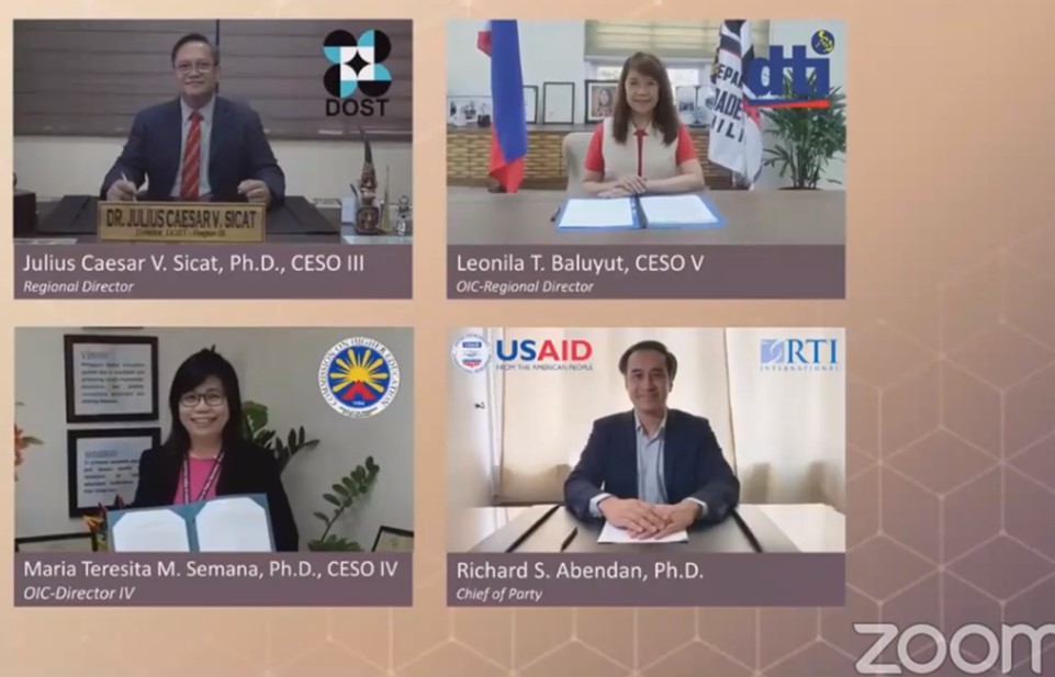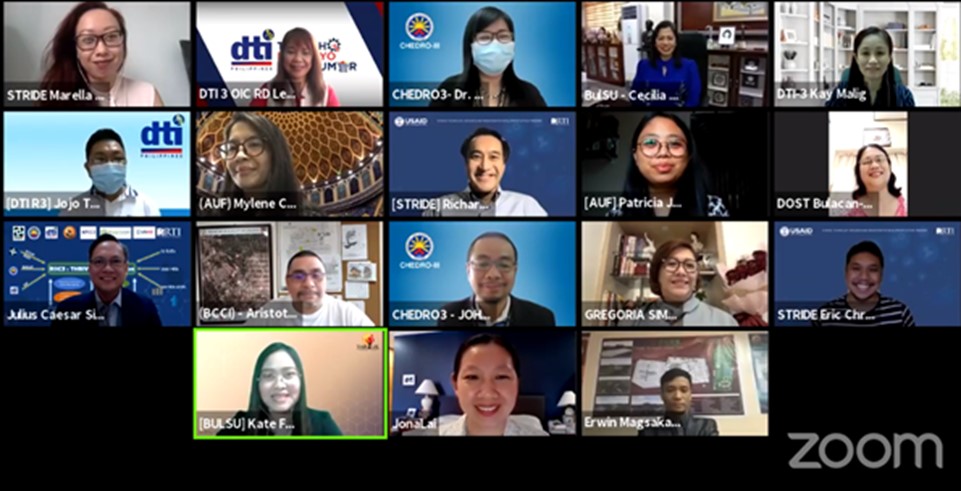 The event, held online on 12 March 2021, was capped by the virtual signing of a Memorandum of Agreement for the establishment and maintenance of a RIIC by the lead agencies, the Department of Trade and Industry Regional Office 3 (DTI-Region3), the Department of Science and Technology Regional Office 3 (DOST-Region 3) and the Commission on Higher Education Region 3 (CHED-Region 3) together with Bulacan State University (BULSU), Angeles University Foundation (AUF), Philippine Chamber of Commerce and Industry (PCCI) North Luzon, Bulacan Chamber of Commerce and Industry (BCCI) and the United States Agency for International Development (USAID).