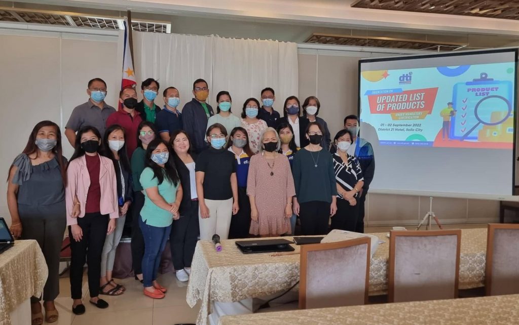 DTI R6 Regional Director Rebecca Rascon joins the participants of DTI’s 2-day Orientation on Updated List of Products Under Mandatory Certification on September 1-2, 2022 at District21 Hotel, Iloilo City