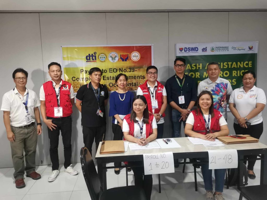 First batch of payouts for the Province of Negros Occidental held at Food Terminal Market of Occidental Negros (FTMON), Bacolod City on September 13, 2023 with heads of lead implementing agencies such as DTI VI Officer-in-Charge Assistant Regional Director Rachel Nufable, DILG Negros Occidental Provincial Director Teodora Sumagaysay, Bacolod City Administrator Atty. Pacifico Maghari III, DA Assistant Regional Director Engr. Jose Albert Barrogo, and DSWD Assistant Regional Director Arwin Razo, among others.