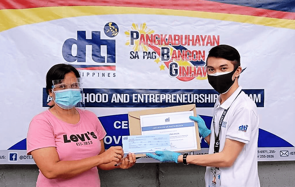 Through the DTI’s Pangkabuhayan sa pagBangon at Ginhawa (PBG) Program, 78 micro-entrepreneurs from Barangay Mambaling who were victims of fire incidents that destroyed their livelihood and 1 micro-entrepreneur from Barangay Buhisan whose business was affected by COVID19 pandemic received the Negosyo Kits in coupon form, which enabled them to choose/avail of various merchandise items to restore or improve their business.
