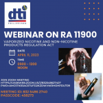 The Department of Trade and Industry Region 6 is calling on all manufacturers, importers, wholesalers, traders, distributors, and retailers of vaporized nicotine and non-nicotine products to join their upcoming free webinar on RA 11900, the “Vaporized Nicotine and Non-Nicotine Products Regulation Act”. The webinar will be held on April 11, 2023, at 9:00 AM via continue reading : DTI R6 invites local vaping industry to learn about RA 11900 in upcoming webinar