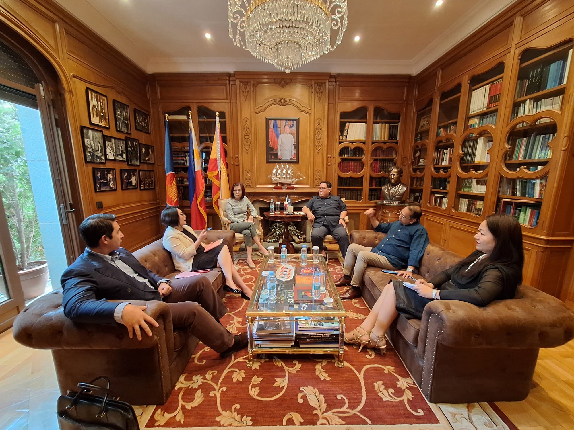 Commercial Counsellor Althea Karen Antonio officially reopened PTIC-Madrid and met with the Philippine Embassy’s Consul General Mark Francis Hamoy and Consuls Eric Valenzuela, Dyan Pastrana, and Monika Limpo, at the Philippine Embassy in Madrid last September 2024.