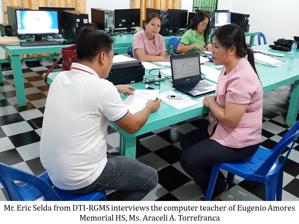 DTI RGMS Mr. Eric Selda interviews the Cotabato City National High School’s Computer Lab-in-Charge, Mr. Orly B. Ducoy.