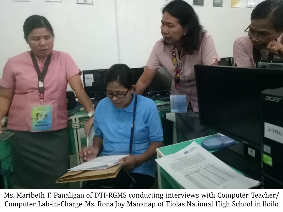 The monitoring visit was undertaken to ensure that the computer package, which consists of 10 computer desktops and a printer, are operational and that recipient schools comply with the requirements set forth in the Memorandum of Agreement (MoA) which was signed by the DTI, through the Regional/Provincial Office, and the Recipient School. These requirements include among others the retrieval from the recipient schools of the reportorial requirements of the DTI Finance Service (FS), DTI Human Resource and Administrative Service – Procurement Service (HRAS – PS) and Commission on Audit (COA) and the provision of counterpart facilities by the school i.e. AC unit/s, door and window grills, stable internet connection, security personnel, etc.