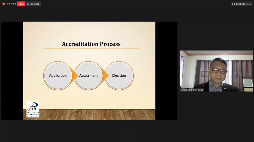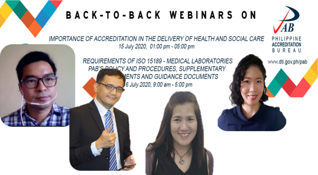 The Department of Trade and Industry – Philippine Accreditation Bureau (DTI-PAB) continues its webinar series on accreditation for health and social care on November 26, 2020 via Zoom platform. The goal is to help medical testing laboratories understand the importance and benefits of ISO 15189 accreditation and hopefully motivate laboratories