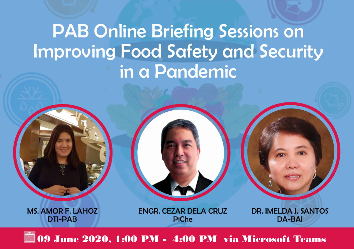 On 09 June 2020, the Philippine Accreditation Bureau (PAB) will celebrate the World Accreditation Day 2020 (#WAD2020) by holding a series of free online seminars. PAB’s “Online Briefing on Improving Food Safety and Security in a Pandemic” will feature three topics by experts in their field. The webinar will kick