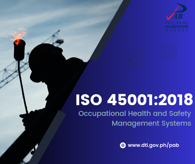 With the approval of DTI Department Order 23-45 on April 24, 2023, the DTI - Philippine Accreditation Bureau (DTI-PAB) now offers the accreditation scheme on Occupational Health and Safety Management Systems (OHSMS) certification based on ISO 45001:2018. ISO 45001:2018 specifies the requirements for an occupational health and safety management system