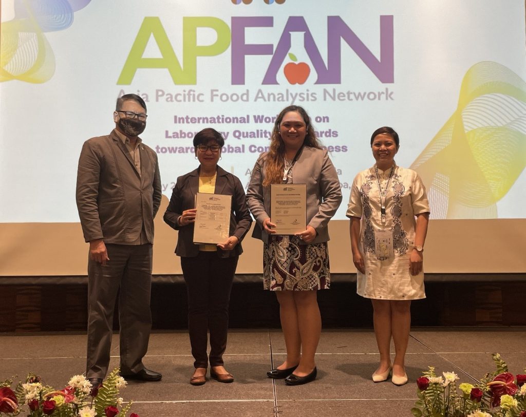 The Department of Trade and Industry – Philippine Accreditation Bureau (DTI-PAB) formally awarded the Certificate of Accreditation to ISO/IEC 17043:2010 to the Department of Science and Technology (DOST) Food and Nutrition Research Institute – Proficiency Testing Laboratory (FNRI-PTL) during the Asia-Pacific Food Analysis Network (APFAN) International Workshop on Laboratory Quality