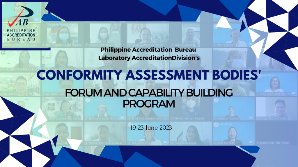 The Department of Trade and Industry - Philippine Accreditation Bureau (DTI-PAB) provided refreshers and training, exclusively to its accredited Conformity Assessment Bodies (CABs) by organizing a weeklong Forum and Capability Program. The virtual event, held from June 19 to June 23, 2023, served as a valuable platform for knowledge sharing,
